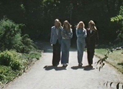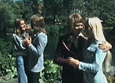 Frida and Agnetha punching Benny and Björn in the stomachs!