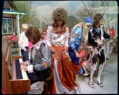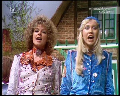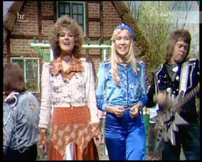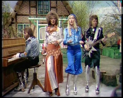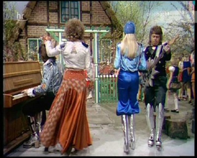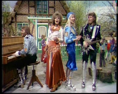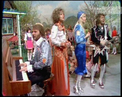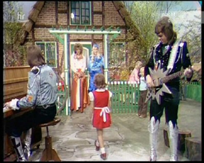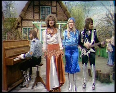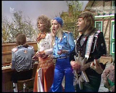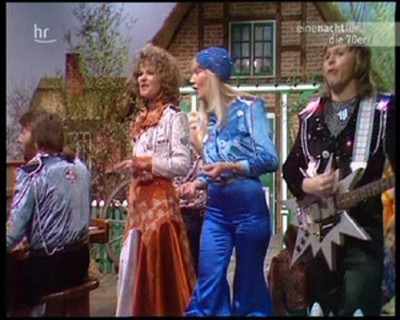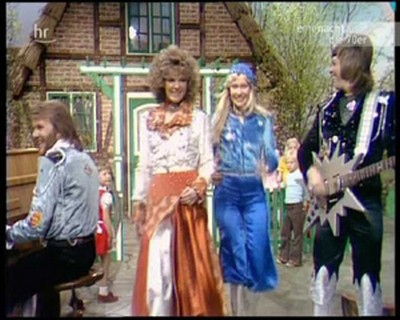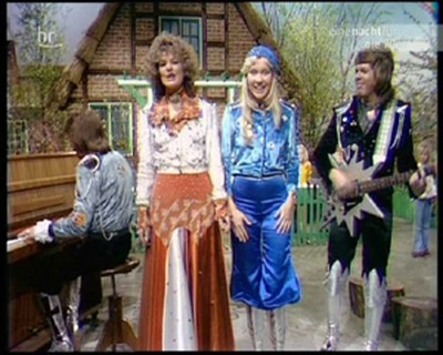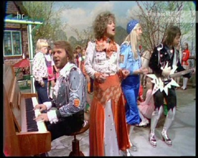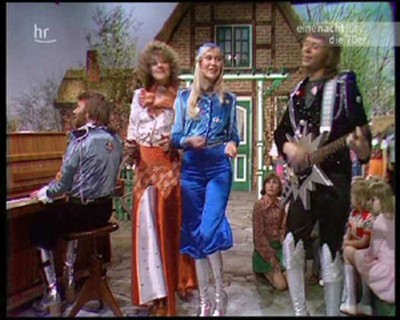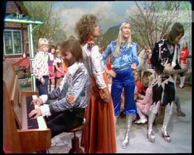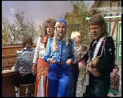 Waterloo was performed surrounded by little children and introduced by Marie-Louise Steinbauer who was the host between 1965 and 1976. This happened while their Top of The Pops performance was being aired ithe UK.
