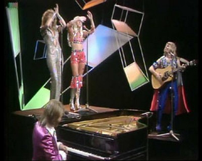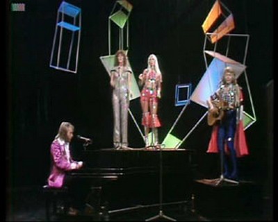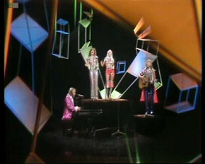ABBA appeared performing Ring Ring and was the 1974 single remix with a re-recorded backing and LIVE vocals. This was the follow-up to Waterloo but it only got to No.32 in the UK charts. They also appeared standing before the cameras just before the clip whilst being introduced.