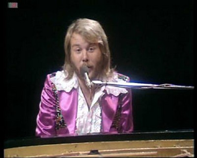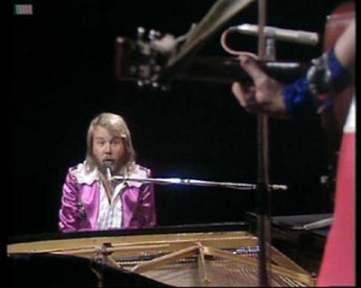 Benny was wearing Björn's pink jacket from the Eurovision Song Contest preambles earlier in the year.