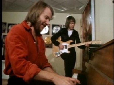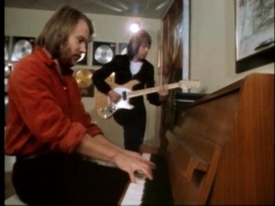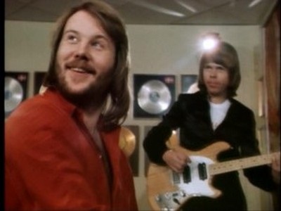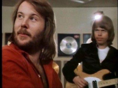 Benny & Björn were shown playing piano and guitar respectively at the beginning and end of the report. Firstly, they played Jingle Bells and they ended with a snippet of a brand new song called Thank You For The Music.