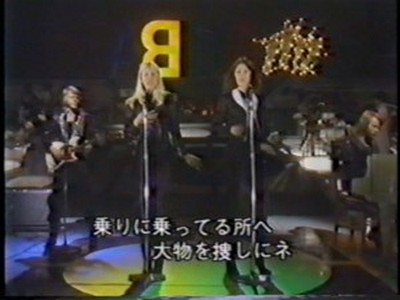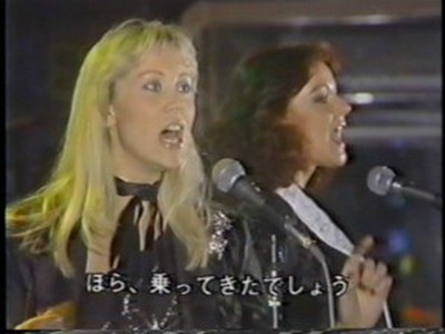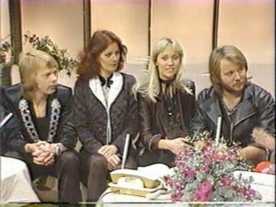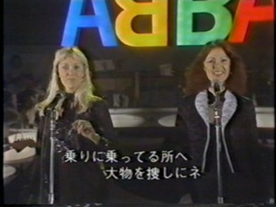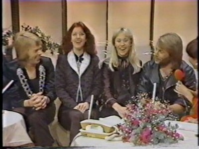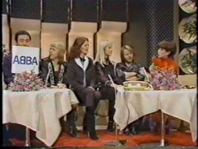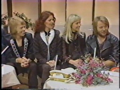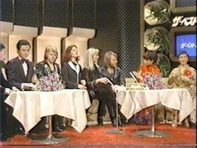 ABBA stepped into the studio through the programme's famous mirror door as all the guests did, and then they were interviewed briefly by hosts Hiroshi Kume (now a newscaster) and Tetsuko Kuroyanagi (still on TV in 2011) and were asked which of them were couples; which is the 'A' and 'B' (Benny said they hadn't decided); whether they liked Japanese food (Agnetha liked everything but raw fish whereas Björn liked it and Frida liked tempura). They were also asked whether it was true that in England they sold 250,000 copies in one day of their latest single and how they felt about it ("not bad!" said Björn).