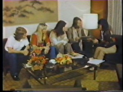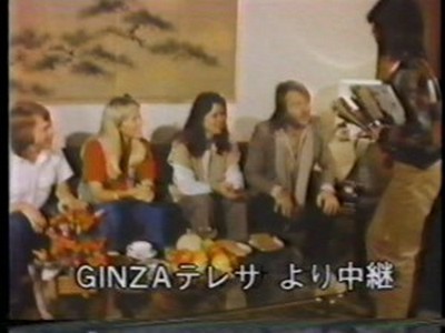 A brief tour around Polar Music Studios ws shown along with a clip of Dancing Queen was also shown from 1976. Benny said he was happy to be in Japan on their programme and that they hoped to be back soon for a concert tour. He was asked how this visit differed from his previous visit 6 years previously and he said that now he was recognised. Agnetha said it was very nice to be on their show and that she would miss the fans when they go back to Sweden. Frida said, "Lots of love to the audience and all the viewers of Ginza Now programme from Frida". Björn spoke in Swedish and said, "we love you!". (Agnetha and Frida's words were shown over the footage of the Polar Studio tour so you don't see them speaking, you only heard them).