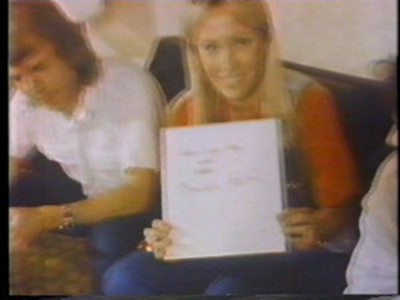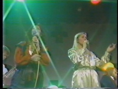 Agnetha was wearing her Tio Ar Med Agnetha cream satin blouse with matching trousers. She would also wear the blouse briefly in the When All Is Said and Done PROMO three years later.