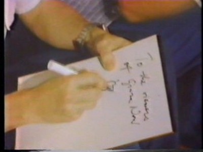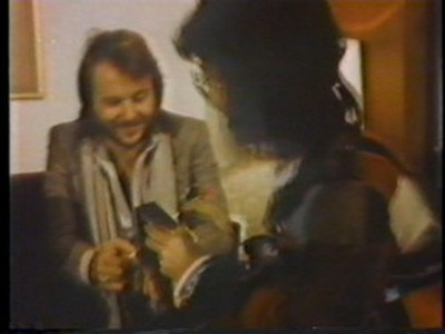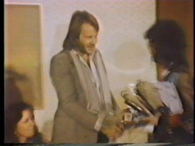 A previous small interview was shown where they each signed a greeting to the viewers of Ginza Now (you can see Benny drawing his little man holding the balloon) and each signed a copy of ABBA - The Album.