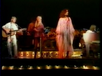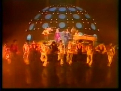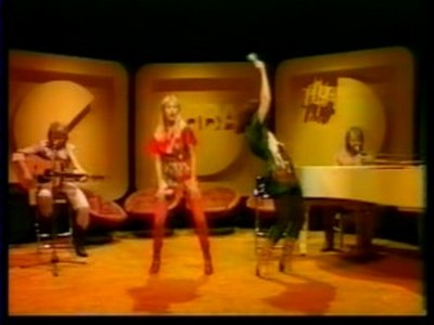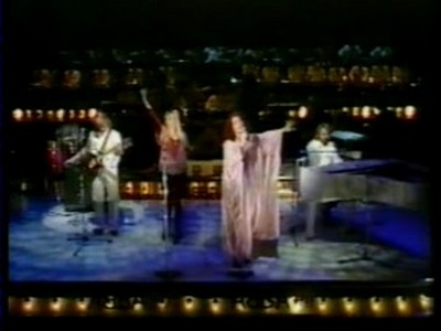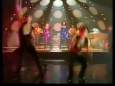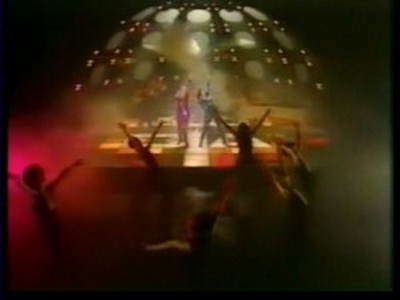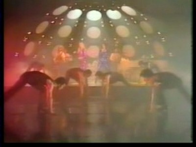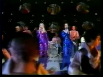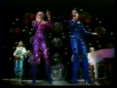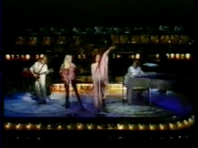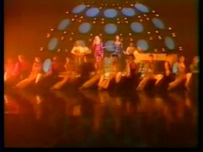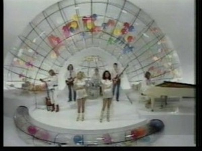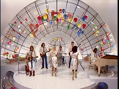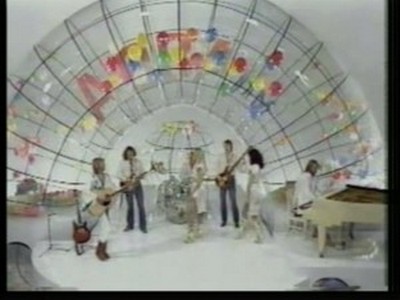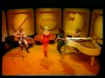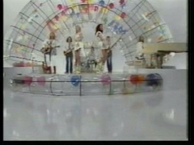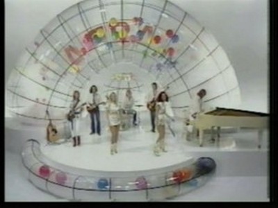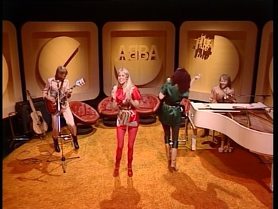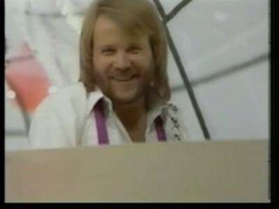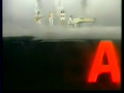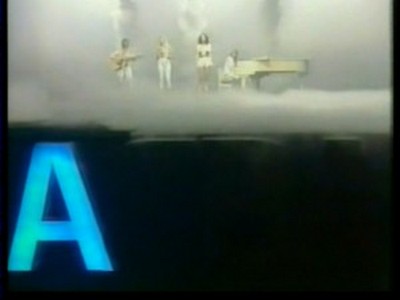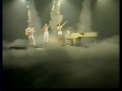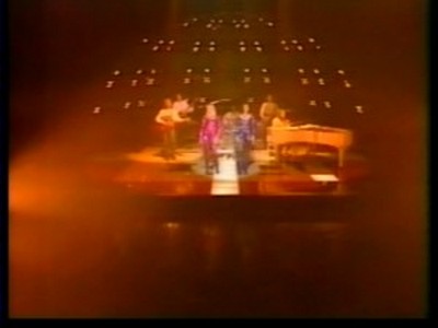 In the original broadcast version of Summer Night City, the screen was annoyingly split into four containing shots of ABBA promos (Money, Money, Money, The Name of the Game and Summer Night City can be identified), scenes from Stockholm/Sweden and the performance of Summer Night City took up only a quarter of the screen at any one time. A possible explanation for this (now we have the full screen version on the ABBA in Japan DVD), is that the camera is knocked slightly off balance at one point. It was possibly felt that by splitting the screen up with four different moving images, viewers wouldn't notice the mistake! I have included the DVD released pictures in the gallery here rather than the original broadcast version.