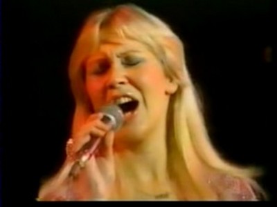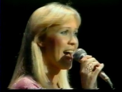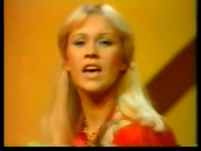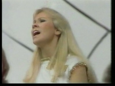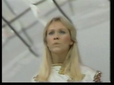 Agnetha: "Hello! I'm Agnetha. I know it's very hard for you to pronounce but you can say "Agnetha" or you can say "Anna". When we came here, we discovered that you have very long days. In Sweden we have only five hours daylight by now. We go ski-ing, we play ice-hockey and and we talk about love! And here's the next B."