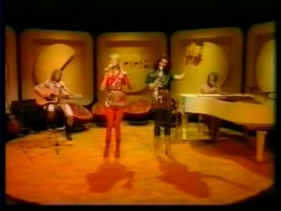 Frida: "Hello. My name is Anni-Frid- the last A in ABBA. We all met because of our interest in music and also because the boys fell madly in love with us girls! So it all came very natural - and as we have known each other for so long, it's quite easy to keep the group together. And now I would like to introduce the next song and it's Money Money Money.